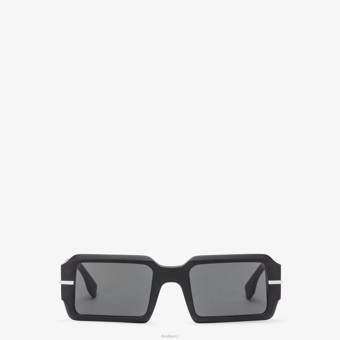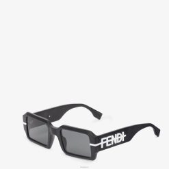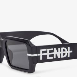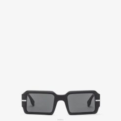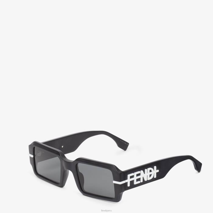 Gafas de sol rectangulares en acetato negro. patillas anchas con letras fendi de metal esmaltado en blanco. lentes grises.