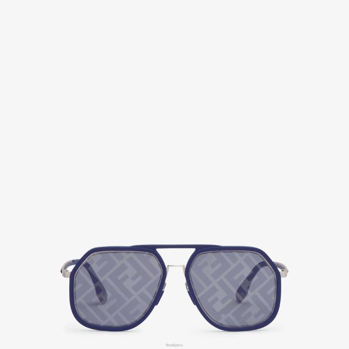 Gafas de sol cuadradas con un diseño ultraligero, con montura moldeada por inyección en azul con textura de goma. Montura frontal con doble puente y lentes azules plateadas con logo ff por toda la prenda. patillas delgadas y almohadillas nasales ajustables.