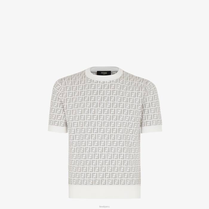 Jersey de manga corta y cuello redondo. bordes acanalados. confección en hilo de viscosa blanca con motivo ff incrustado.