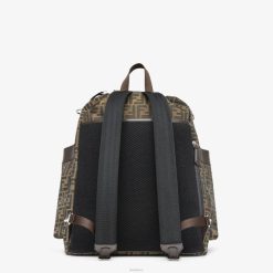 Mochila grande de tejido jacquard con motivo ff marrón. Detalles de piel marrón y solapa con logo de Fendi Roma en relieve.