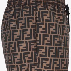 Bañador tipo shorts con cinturilla elástica y cordón. de tela con motivo ff marrón.