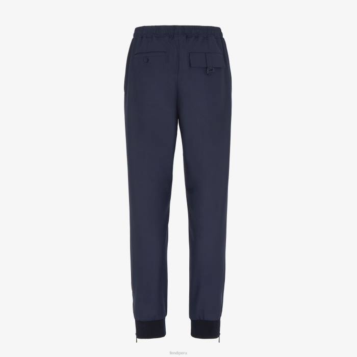 Fendi hombres pantalones de lana 2LH8E2094 vestir azul