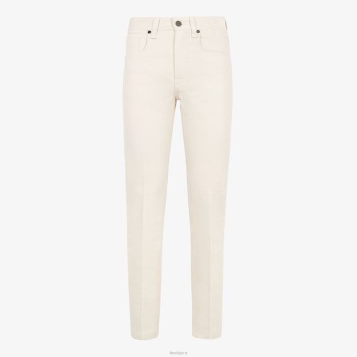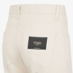 Pantalones de corte regular y pierna recta. pinzas delanteras y bolsillos laterales. Cierre de cremallera oculta y botón de tachuela. confeccionado en denim de algodón blanco. adornado con una etiqueta de fendi en jacquard en el bolsillo trasero.