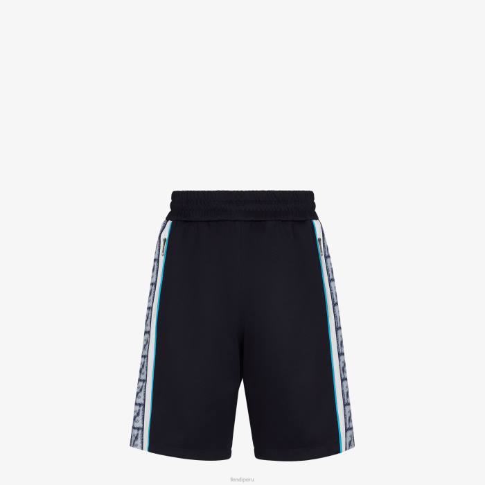Bermudas con cintura elástica. bolsillos laterales con cremallera. hecho de jersey azul. adornado con bandas blancas y cintas ff efecto ikat a juego en los laterales.