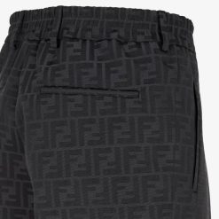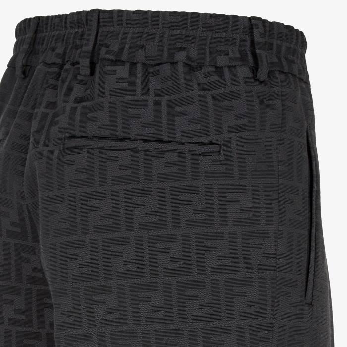 Pantalón de corte recto con pliegues en la parte delantera y aplicaciones elásticas en los costados de la cintura. Cierre de cremallera oculta. hecho de tela negra. adornado con motivo FF en jacquard a juego.