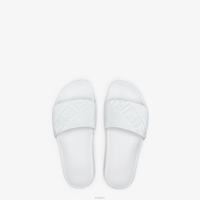 sandalias con banda ancha. la plantilla de poliuretano es ligera y extremadamente flexible. Suelas de goma antideslizantes. fabricado en caucho blanco. la correa presenta una mezcla de texturas con motivo ff diagonal en relieve.