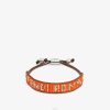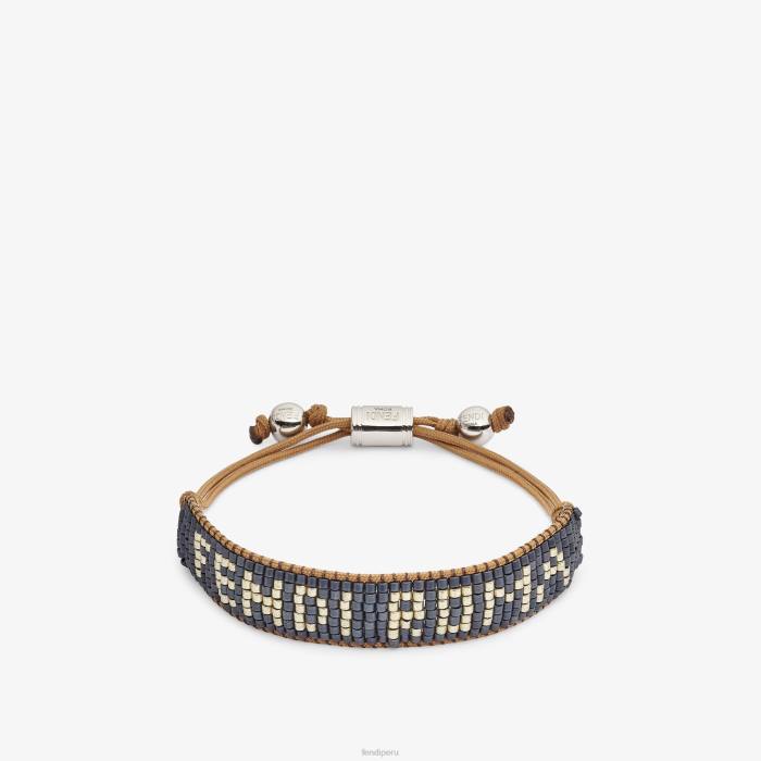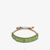 Pulsera suave cerrada con cordón fino ajustable. confeccionado con bordado de pedrería azul y letras fendi roma en contraste. Artículos metálicos con acabado en paladio.