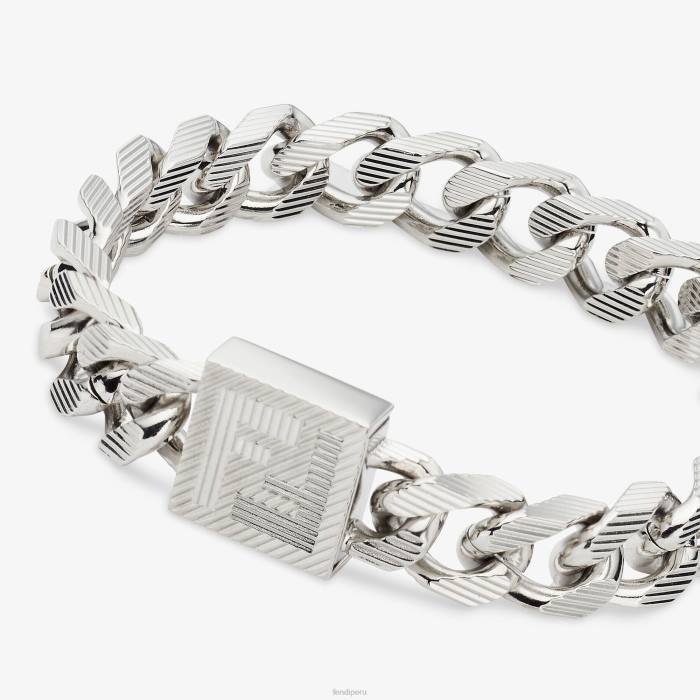 pulsera de cadena de malla y detalle de cubos ff. Realizado en metal con acabado paladio y motivo Fendi Shadow con textura de rayas.