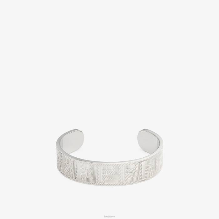 Brazalete de banda ancha con motivo Fendi Shadow con textura de rayas. fabricado en metal con acabado paladio.