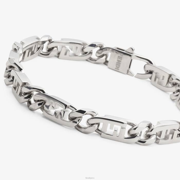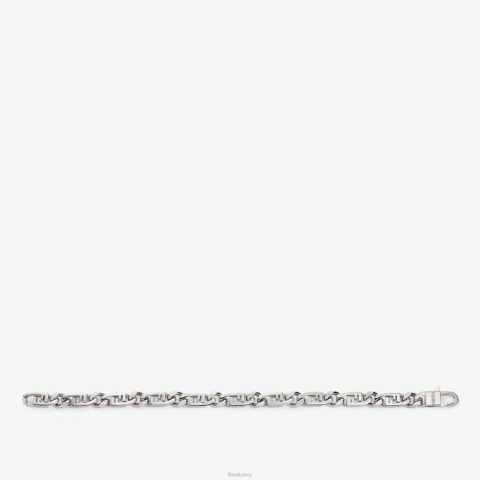 pulsera con malla fendi o’lock y pequeño clip. fabricado en metal con acabado paladio.