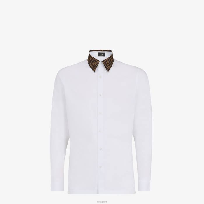 Camisa regular fit con cuello estilo italiano. cierre de botones. Confeccionado en popelín de algodón blanco. cuello en contraste con motivo ff en jacquard.