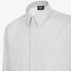 Camisa regular fit con cuello estilo italiano. Cierre oculto con botones. confección en algodón beige con estampado integral del motivo Fendi Shadow.