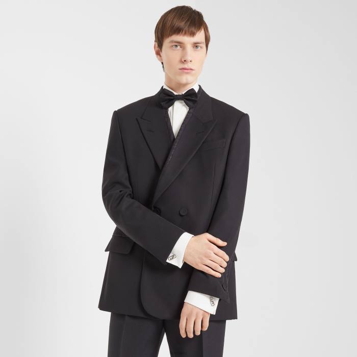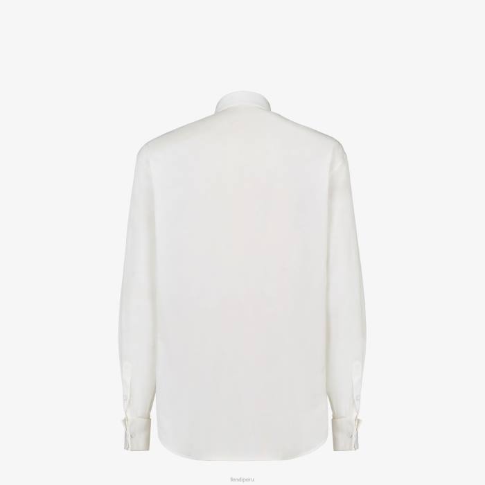 Camisa regular fit con cuello estilo italiano. cierre de botones. hecho de algodón blanco. adornado con motivo plisado bordado en la parte delantera con efecto tapeta.