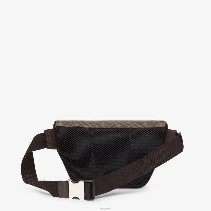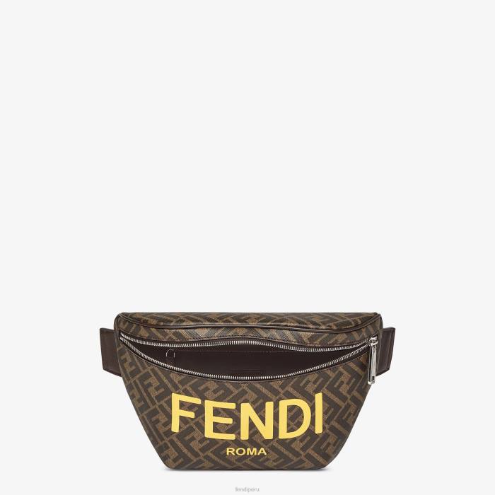 Riñonera confeccionada en tejido texturizado con motivo ff marrón y estampado fendi roma amarillo.