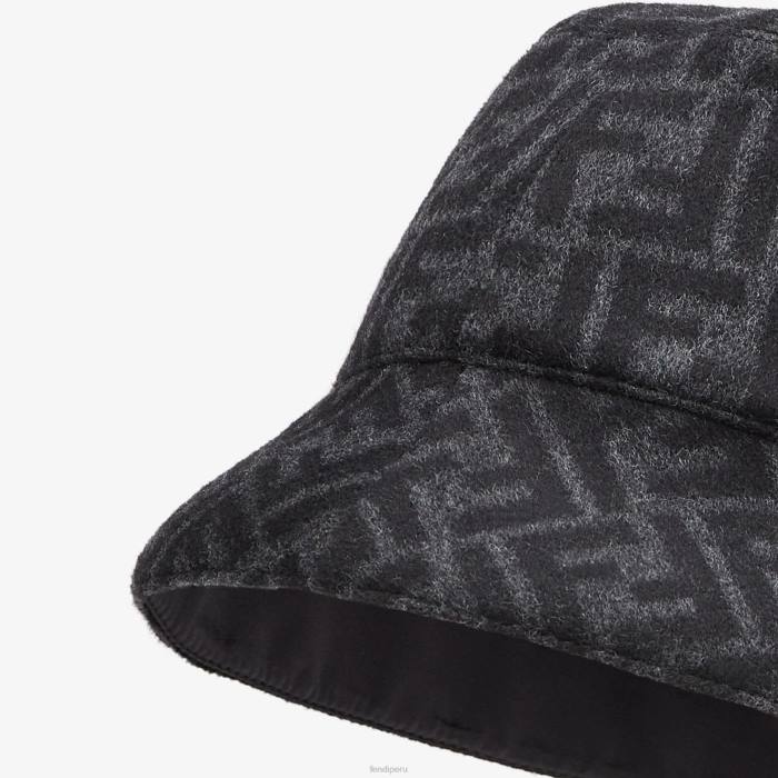 Gorro de pescador confeccionado en lana y seda con motivo ff en negro y gris.