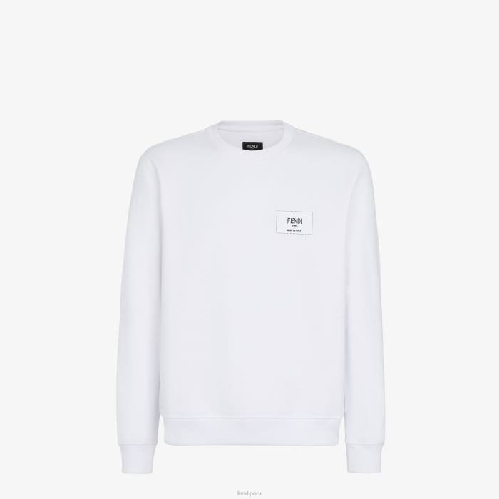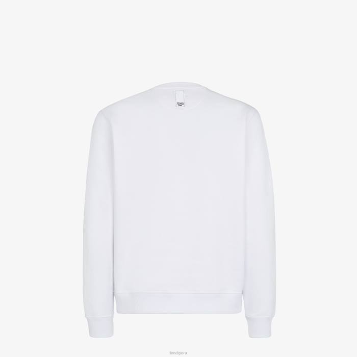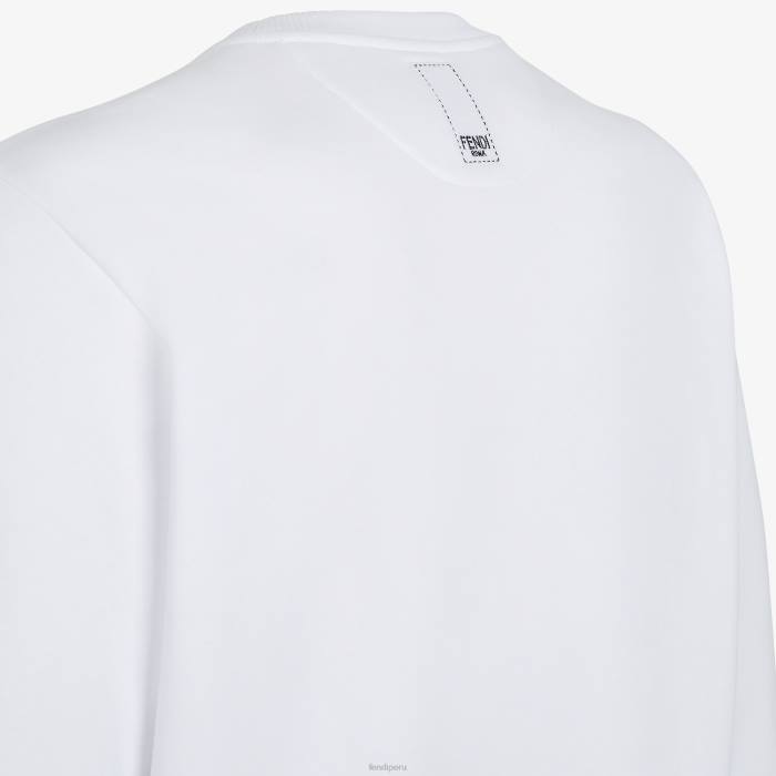 Sudadera oversize de cuello redondo y manga larga. confeccionado en jersey de algodón blanco. decorado con la etiqueta de jacquard bordada de Fendi en el pecho y la espalda.