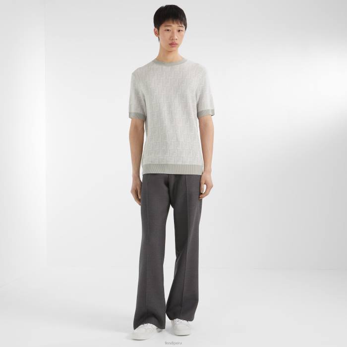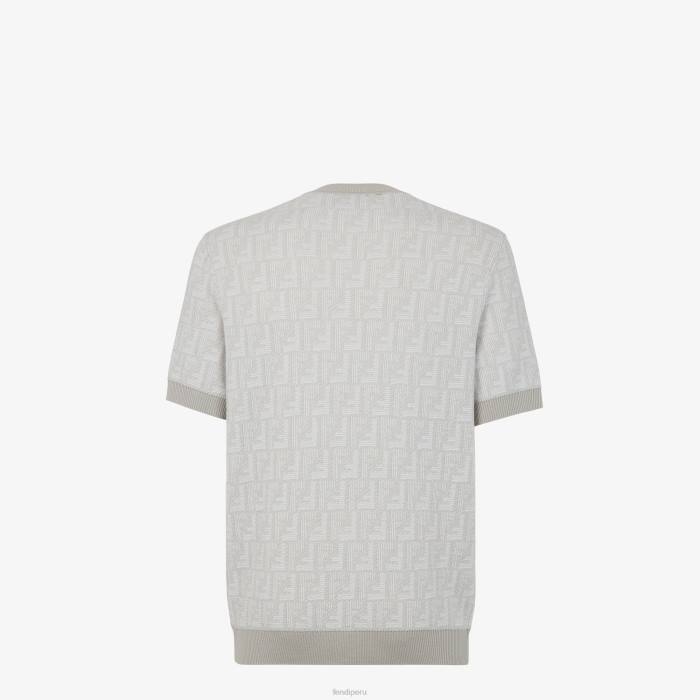 Jersey de manga corta y cuello redondo. bordes acanalados. confección en hilo de lana con intarsia con motivo Fendi Shadow en tonos beige.