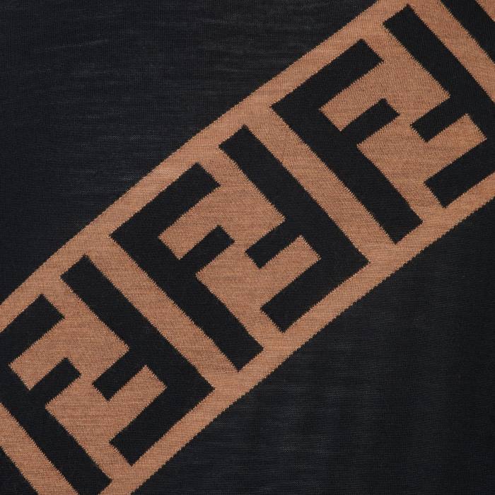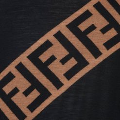 Jersey regular fit con cuello redondo. Acabado de punto acanalado en cuello, puños y dobladillo. hecho de lana negra. banda diagonal de punto con motivo ff en marrón.