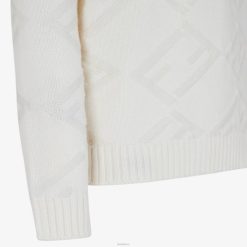 Jersey regular fit con cuello redondo y manga larga. bordes acanalados. confeccionado en lana color blanco perla. El tejido crea el motivo baguette FF en diagonal a juego. adornado con una etiqueta de Fendi en contraste en el dobladillo.