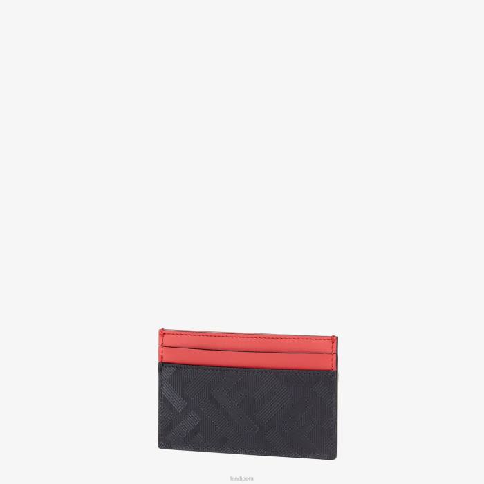 Tarjetero de piel negra con estampado ff en relieve e inscripción fendi roma de metal. detalles en piel roja.