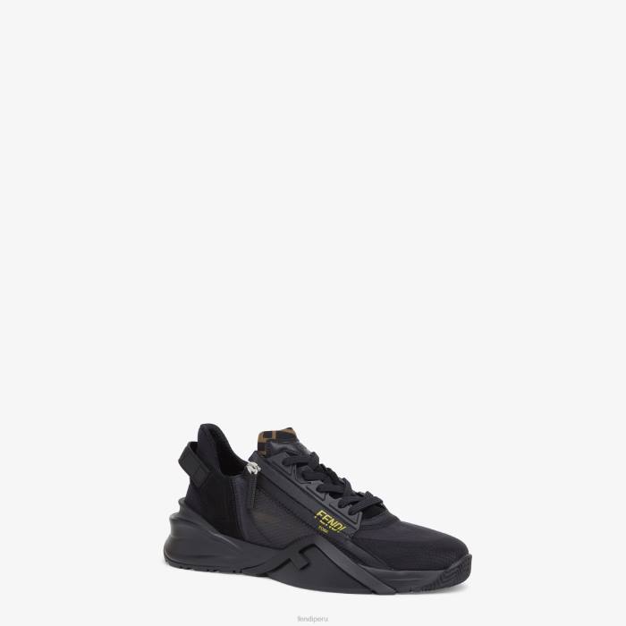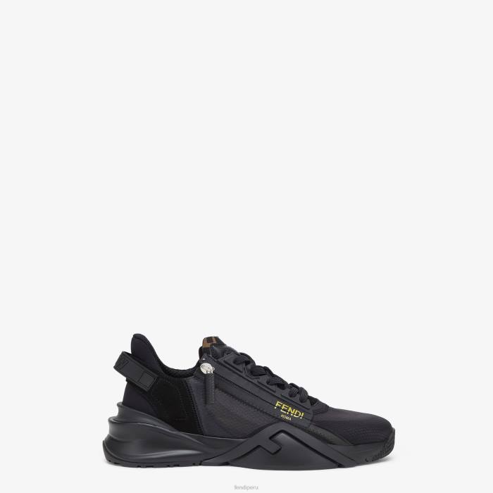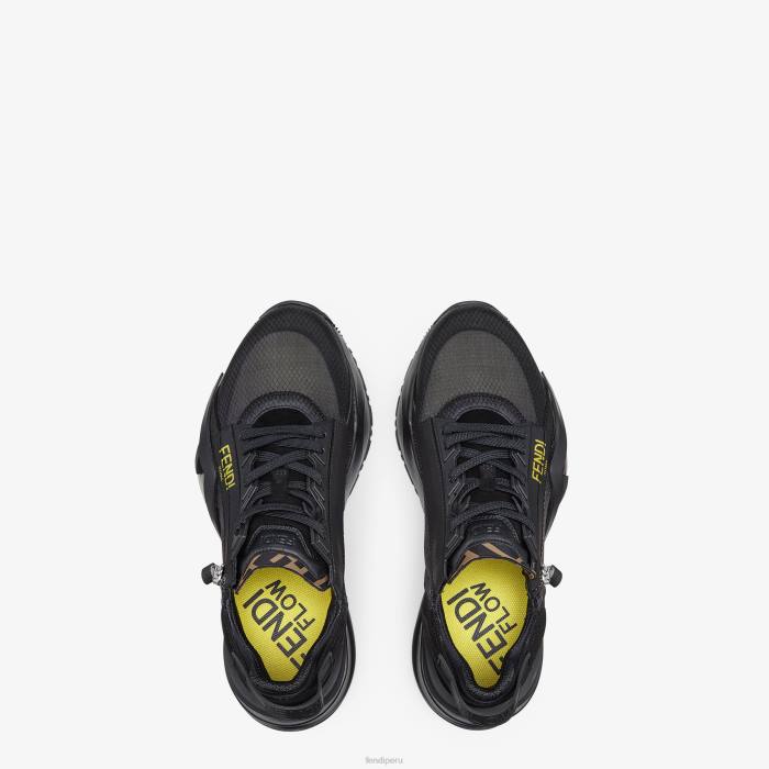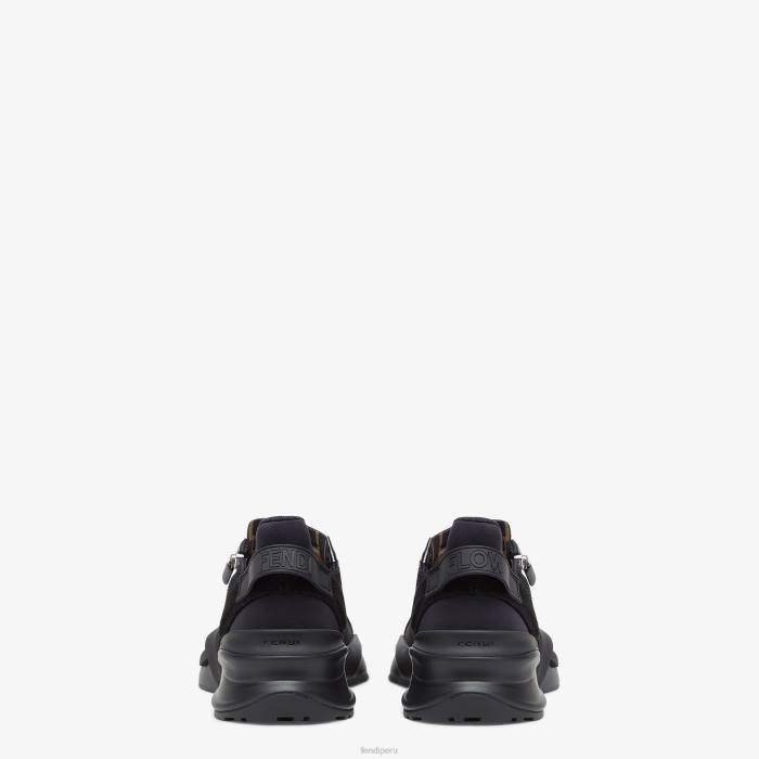 Zapatillas sin cordones con cordones elásticos, cremallera lateral y suela ondulada con f grabada. Letras Fendi Flow grabadas en los talones. Confeccionado en una mezcla de tejidos técnicos y ante en color negro. adornado con detalles de lycra. lengüeta con motivo ff. suela de eva.