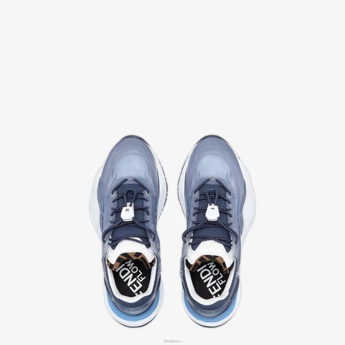 Zapatillas slip-on con cordones elásticos ajustables, tope ff y suela ondulada con f grabada. Letras Fendi Flow grabadas en los talones. Confeccionado en nailon color azul claro con revestimiento inyectado. Detalles de licra con motivo ff. Suela ligera de goma blanca con detalle de f diagonal tono sobre tono.