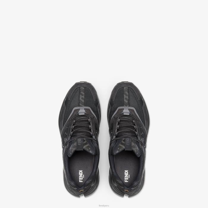 Zapatillas deportivas con motivo ff grabado en los laterales. Suelas corrugadas con ff en los dedos. Confeccionado en piel nobuck negra con detalles en piel tono sobre tono. acabado con inserciones de tejido ff en gris y negro.