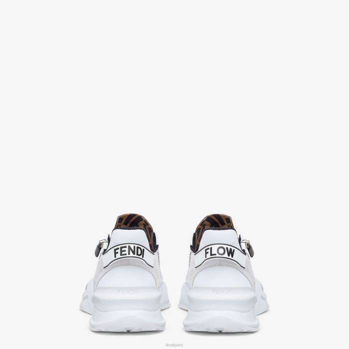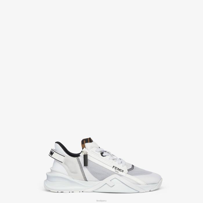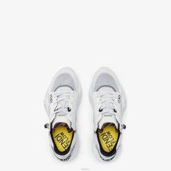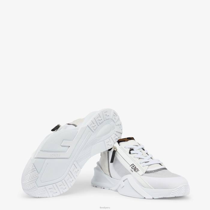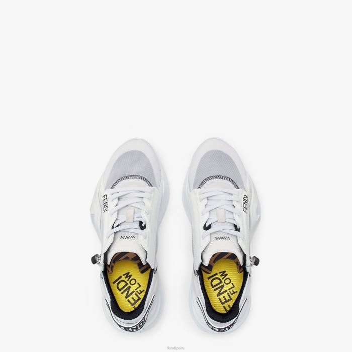 Zapatillas sin cordones con cordones elásticos, cremallera lateral y suela ondulada con f grabada. Letras Fendi Flow grabadas en los talones. confeccionado en una mezcla de tejidos técnicos y ante en color blanco. adornado con detalles de lycra. lengüeta con motivo ff. suela de eva.