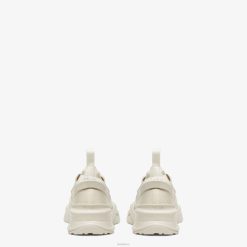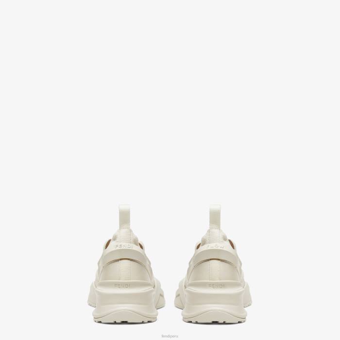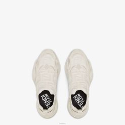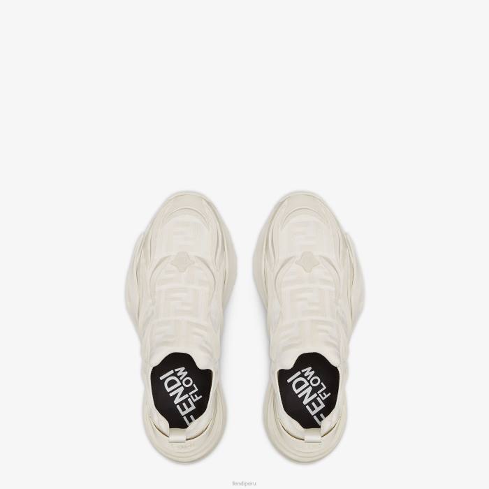 Zapatilla sin cordones con suela ondulada con f grabada. Letras Fendi Flow grabadas en los talones. Confección en malla jacquard con motivo ff en blanco y marfil. Detalles de goma blanca adornados con innovadoras técnicas artesanales.