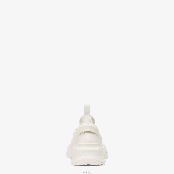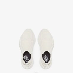 Zapatilla sin cordones con suela ondulada con f grabada. Letras Fendi Flow grabadas en los talones. Confeccionado en malla jacquard color hueso. Detalles en goma tono sobre tono adornados con innovadoras técnicas artesanales.