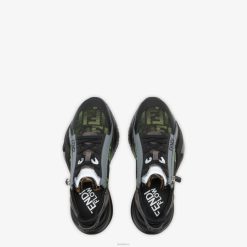 Fendi hombres zapatillas running neón y tela 2LH8E2269 zapatos negro
