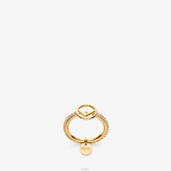 anillo con el nuevo logo de fendi. fabricado en metal con acabado dorado. la banda está decorada con circonitas de colores naturales.