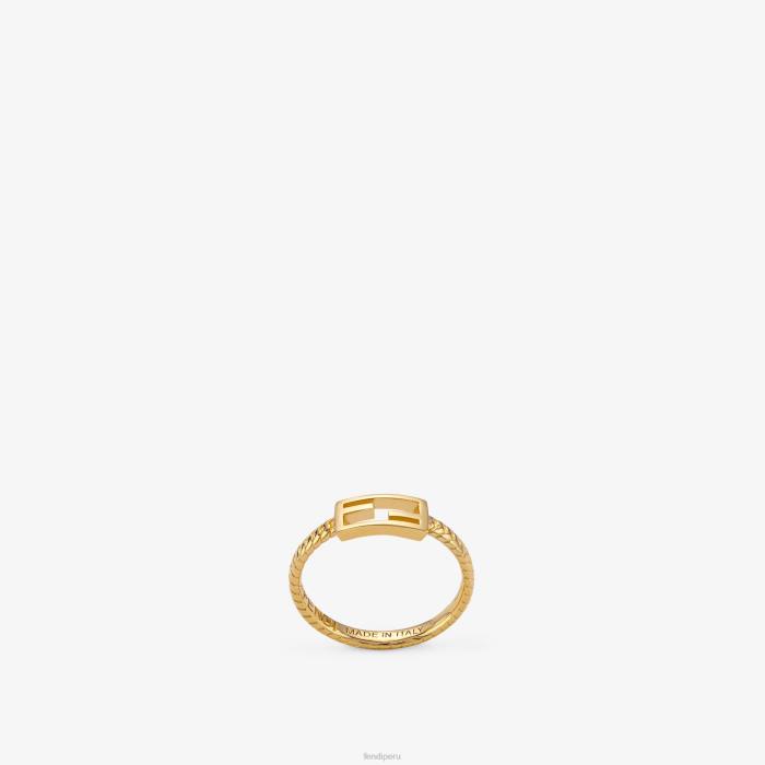 anillo con cadena de eslabones y motivo baguette ff. fabricado en metal con acabado dorado.