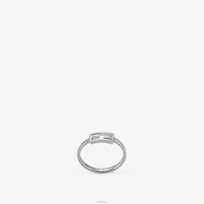 anillo con cadena de eslabones y motivo baguette ff. fabricado en metal con acabado paladio.