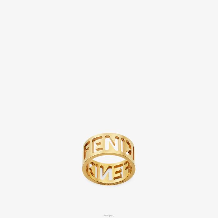 anillo de banda ancha con letras fendi cortadas con láser. fabricado en metal con acabado dorado.