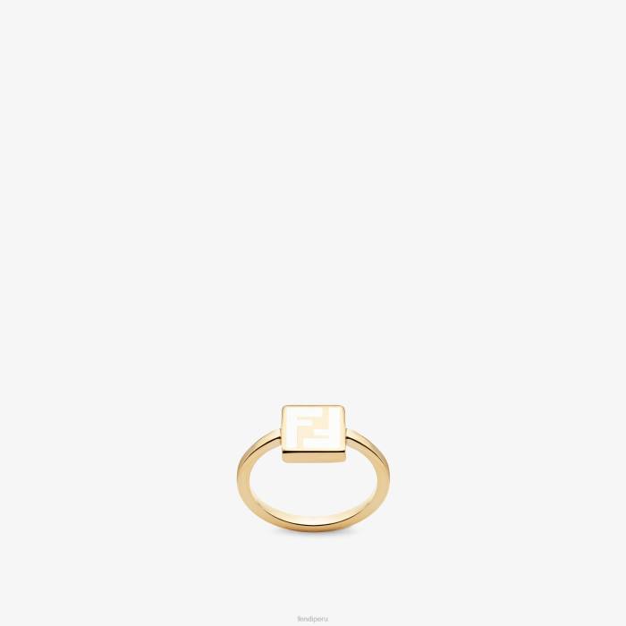 fino anillo elaborado en metal con acabado dorado y adornado con un motivo ff esmaltado en blanco.