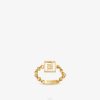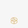 Anillo de banda ancha con dos círculos finos, también utilizable como cierre de fular. fabricado en metal con acabado dorado. decorado con motivo ff esmaltado en negro.