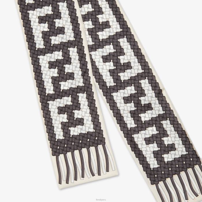 envoltura de doble cara con extremo recto. Se puede llevar alrededor del cuello, anudado en la muñeca o como complemento de un bolso con un toque de color. confección en seda, con motivo ff interlock efecto trompe-l’oeil estampado íntegramente en negro.