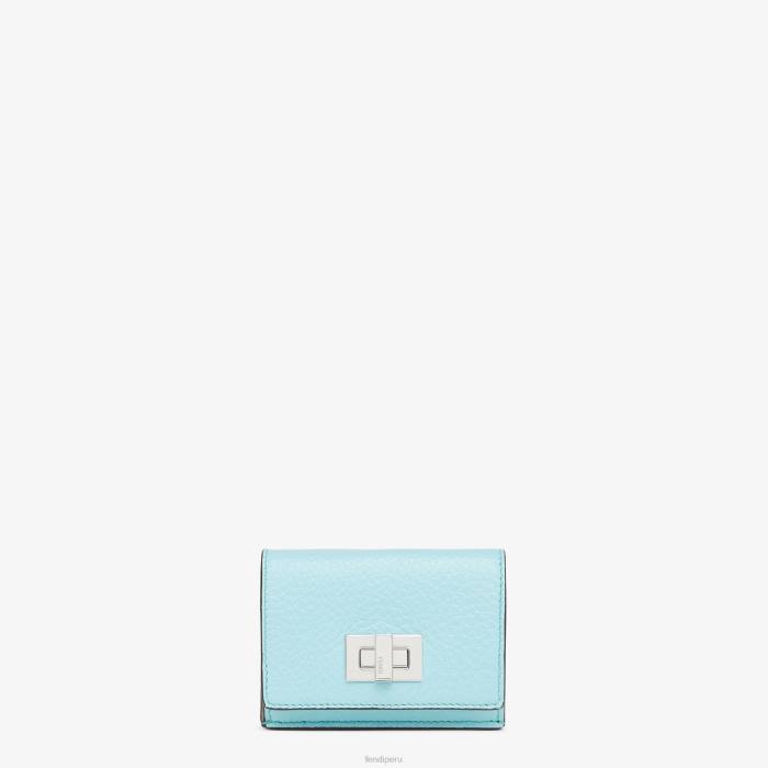Fendi mujer billetera triple peekaboo de cuero 2LH8E1520 accesorios azul claro