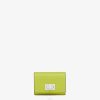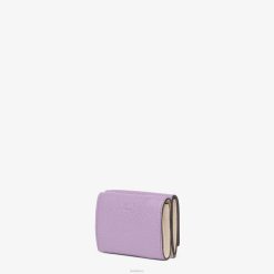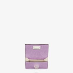 Cartera peekaboo compacta de tres pliegues con gran compartimento interno para billetes y tres tarjeteros ocultos. Monedero externo con icónico cierre giratorio. Confección en piel cuoio romano violeta. Forro de piel color camelia. Artículos metálicos con acabado en paladio.