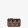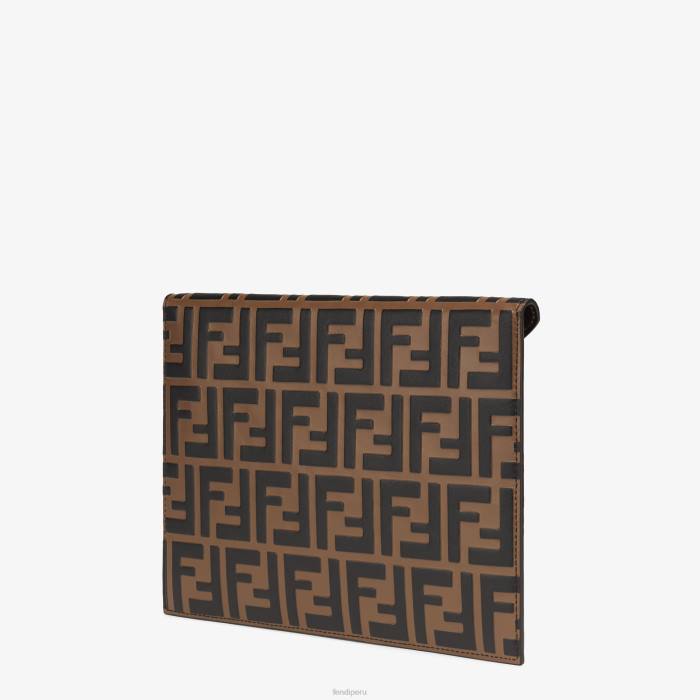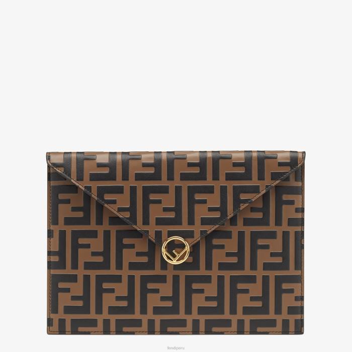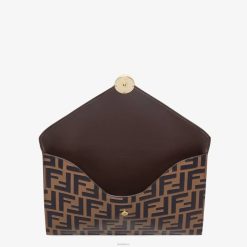 Bolso grande y delgado de f is fendi con solapa geométrica. cierre con botones a presión. Confección en piel de becerro con motivo macro ff. artículos de metal con acabado dorado.