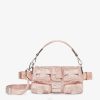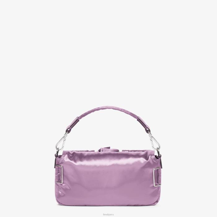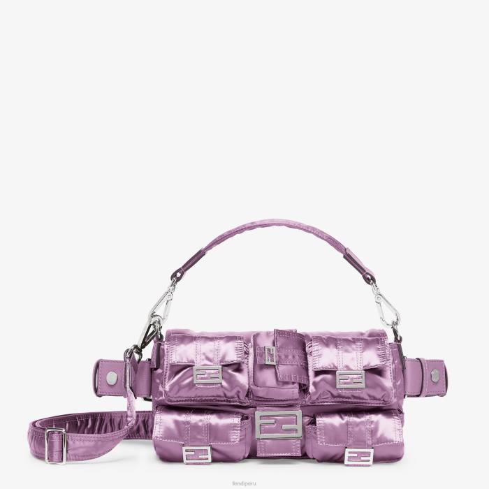 Bolso multibolsillos baguette confeccionado en nailon reciclado brillante color violeta, con cinco bolsillos de parche de diferentes tamaños. los bolsillos y la solapa delantera están decorados con el icónico cierre ff. adornado con cuero negro.
