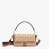 Primer bolso Fendi pequeño confeccionado en visón marrón con cierre oversize de metal en forma de F, ribeteado en piel de napa tono sobre tono.