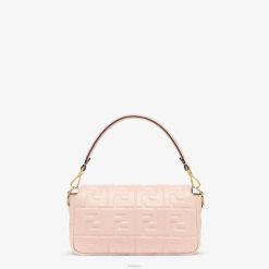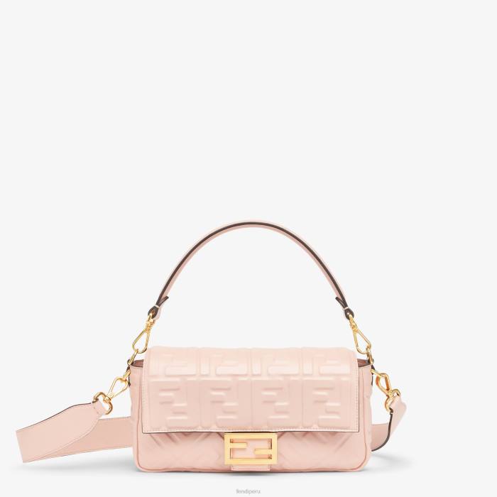 icónico bolso baguette mediano confeccionado en suave napa rosa con motivo ff en relieve con textura tridimensional. decorado con un cierre ff.