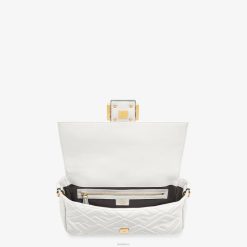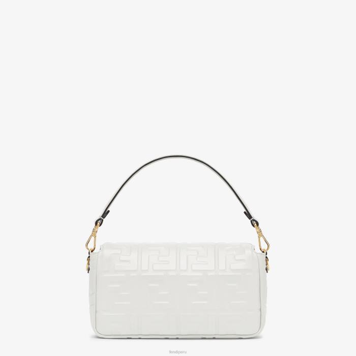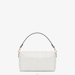 icónico bolso baguette mediano confeccionado en suave napa blanca con motivo ff de textura tridimensional. decorado con un cierre ff.