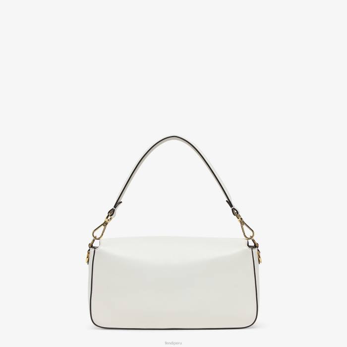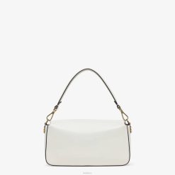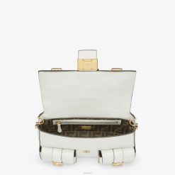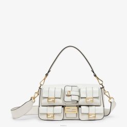Bolso baguette multibolsillos confeccionado en suave napa blanca, con cinco bolsillos aplicados de diferentes tamaños. los bolsillos y la solapa delantera están decorados con el icónico cierre ff.