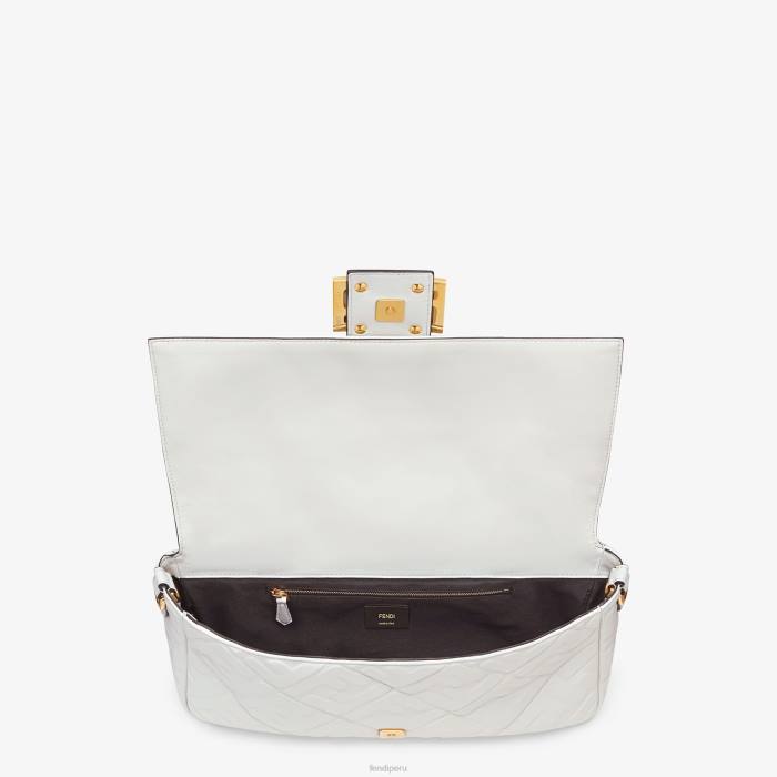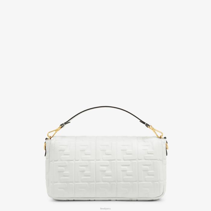 icónico bolso baguette grande confeccionado en suave napa blanca con motivo ff de textura tridimensional. decorado con un cierre ff.