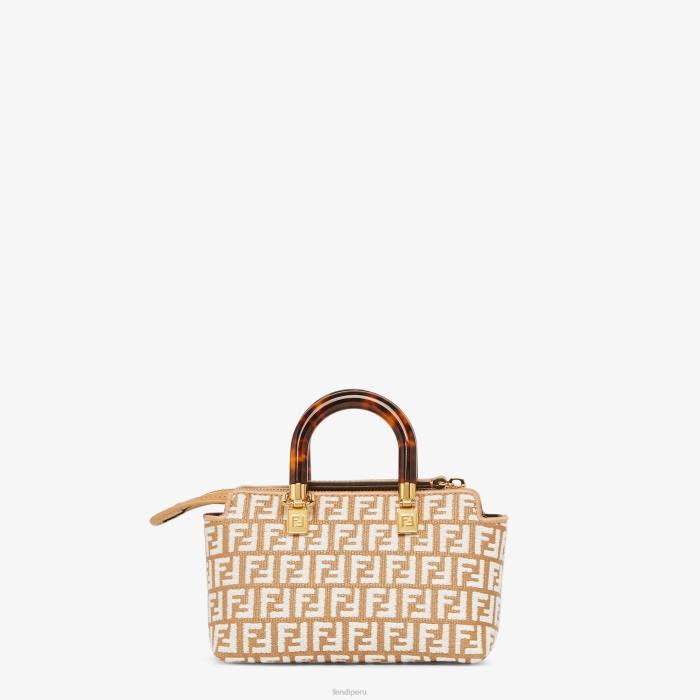 Fendi mujer bolso boston pequeño de rafia con motivo ff de tejido tapiz 2LH8E601 accesorios blanco