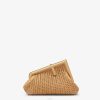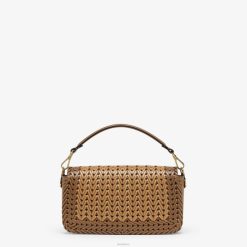 Icónico bolso baguette mediano confeccionado en piel color arena delicadamente entrelazada a mano con bordes entrelazados en color marrón a contraste. decorado con un cierre ff.