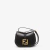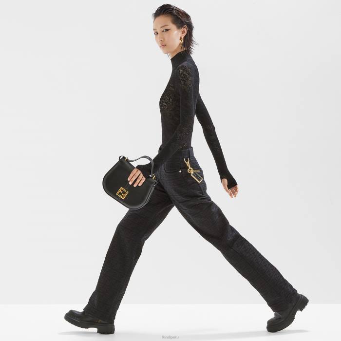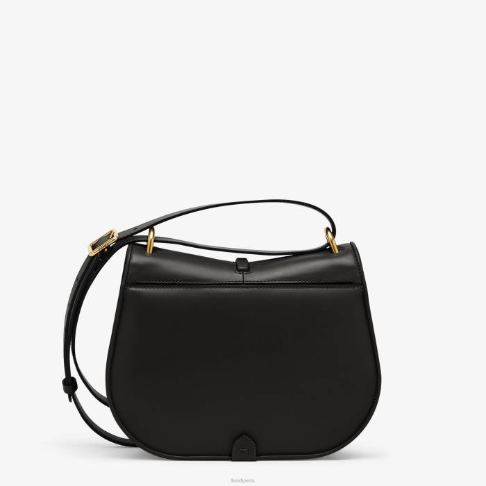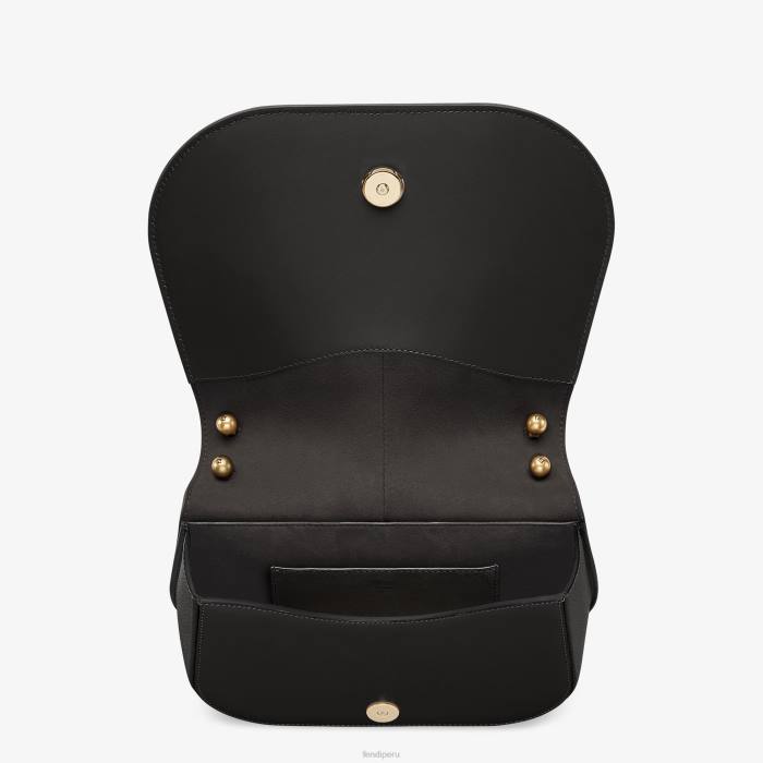 Bolso satchel mediano con líneas curvas y femeninas y solapa alargada adornada con un logo ff de metal. Confeccionado en piel lisa de color negro con bordes y detalles en relieve. los laterales del bolso están confeccionados en piel flor tono sobre tono.